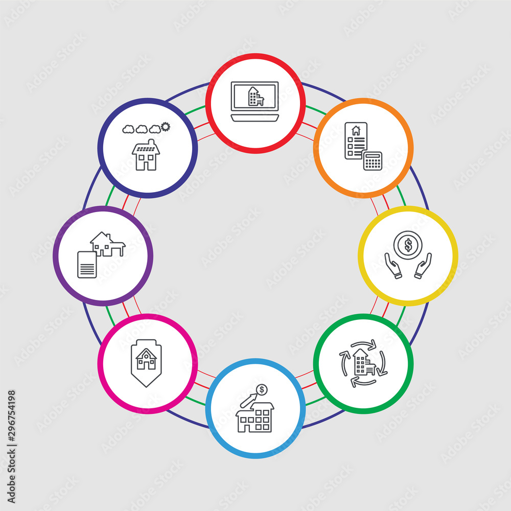 Fotografía 8 colorful stroke icons set included solar panel, house, house, mortgage, house,