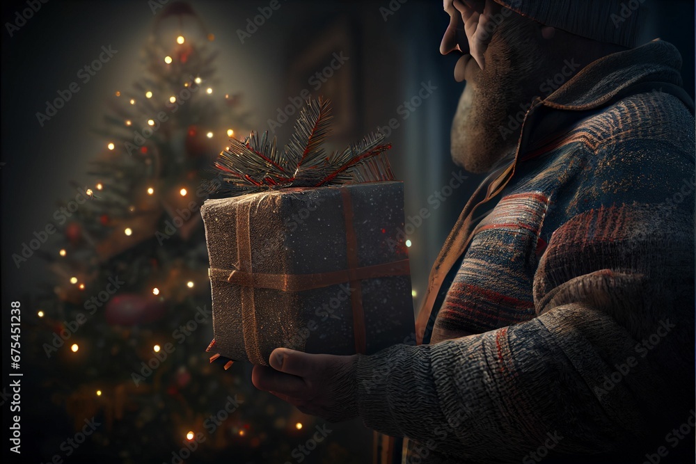 Fotografía AI generated illustration of a beautifully decorated big Christmas present held