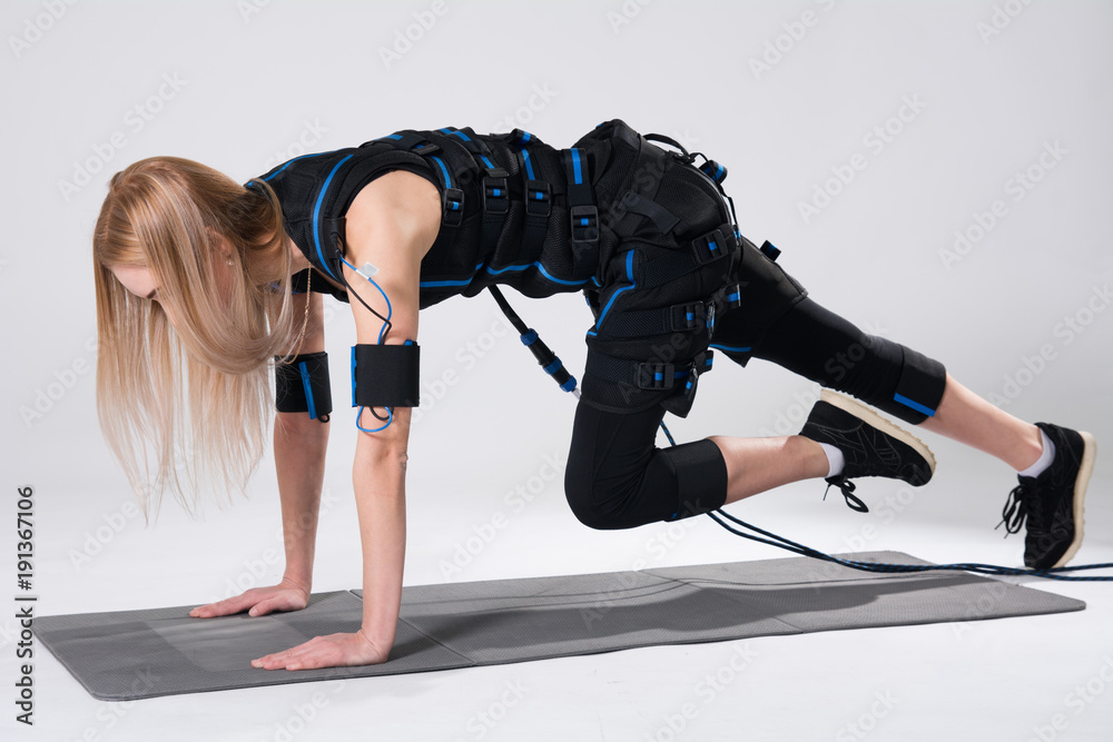 Fotografía Beautiful blonde in an electric muscular suit for stimulation