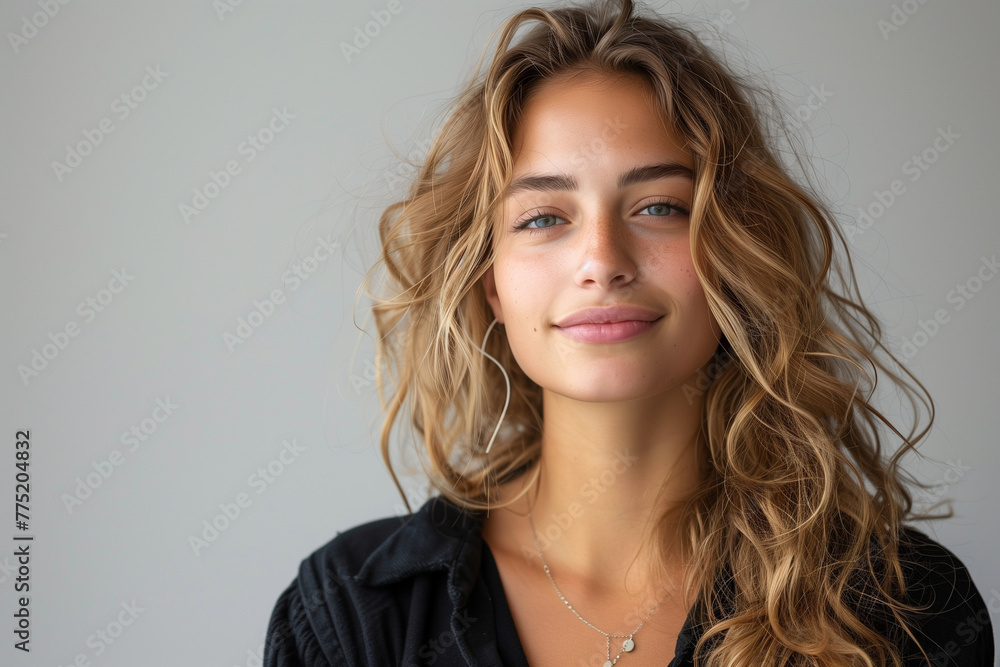 Fotografía Beautiful young woman with long wavy hair, female looking
