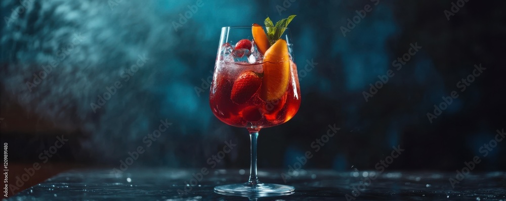 Fotografía Beautifully garnished glass of red sangria with fruits and ice, refreshing drink