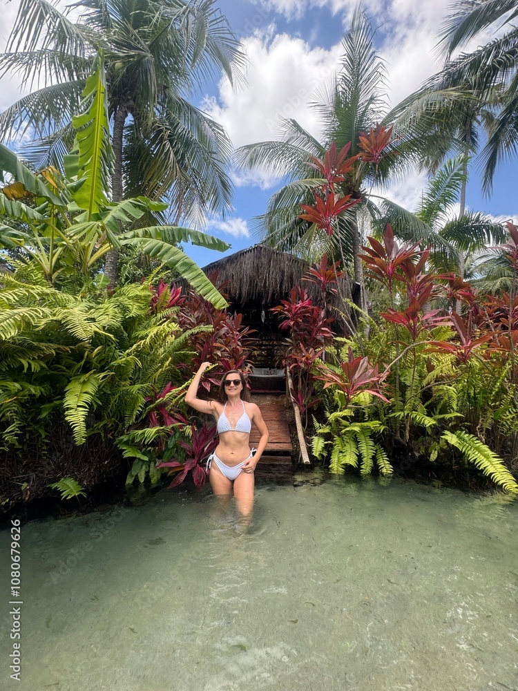 Fotografía beldade de biquíne em paraíso tropical exótico