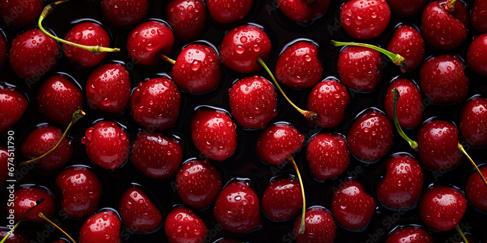 Fotografía Cherry banner. Cherries background. Close-up food photography