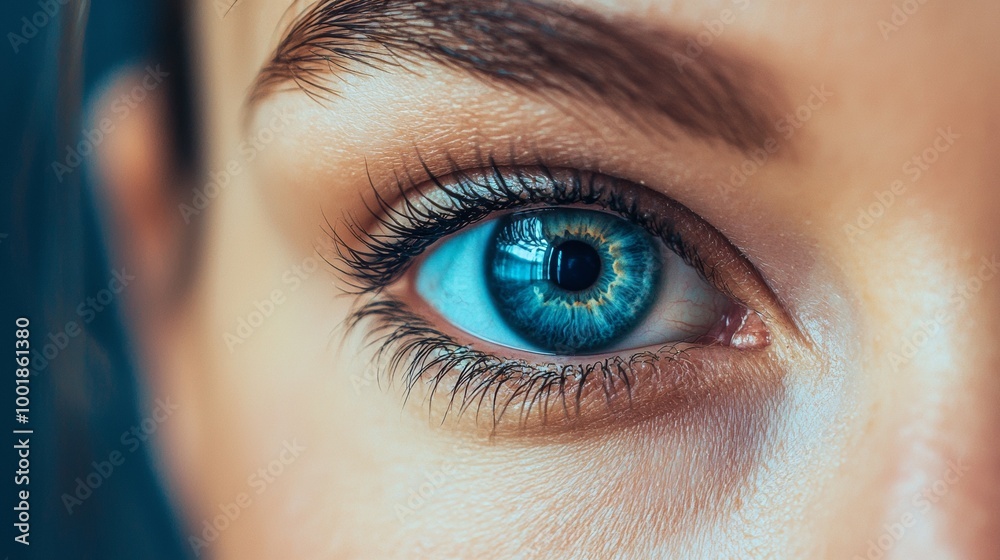 Fotografía Close-up of a blue eye with detailed iris and eyelashes