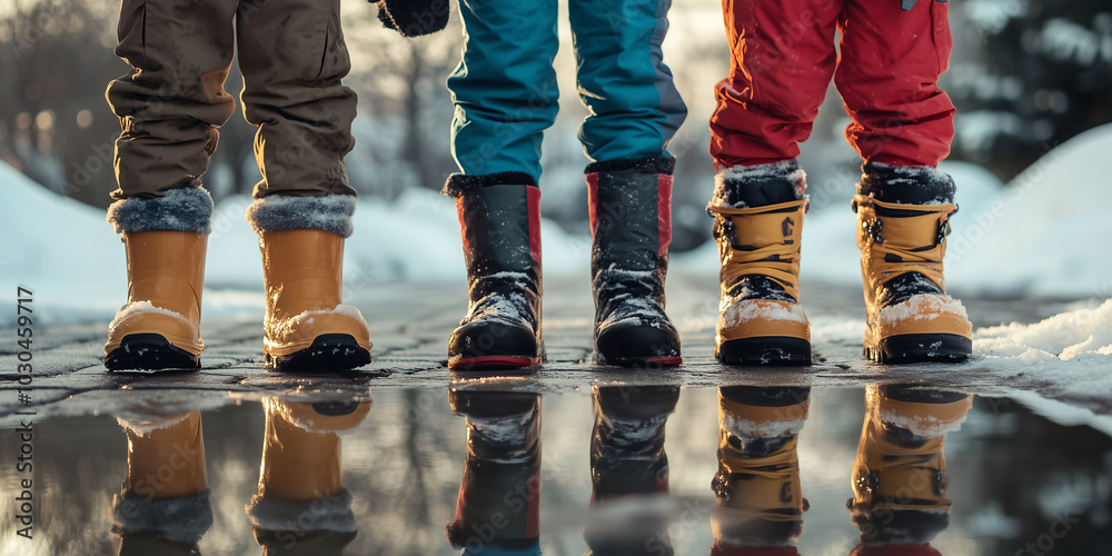 Fotografía Close-up on children legs in winter boots standing in a puddle