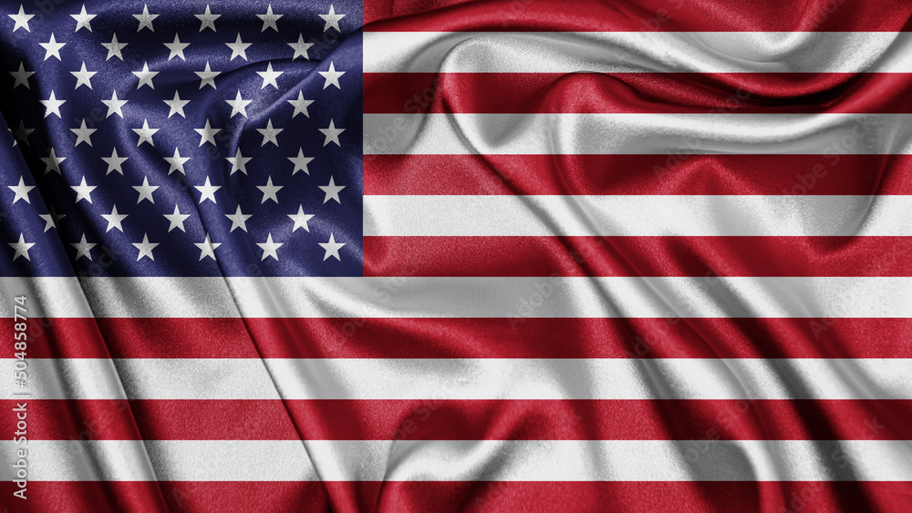 Fotografía Close up realistic texture fabric textile silk satin flag of United States Minor Outlying Islands waving fluttering background