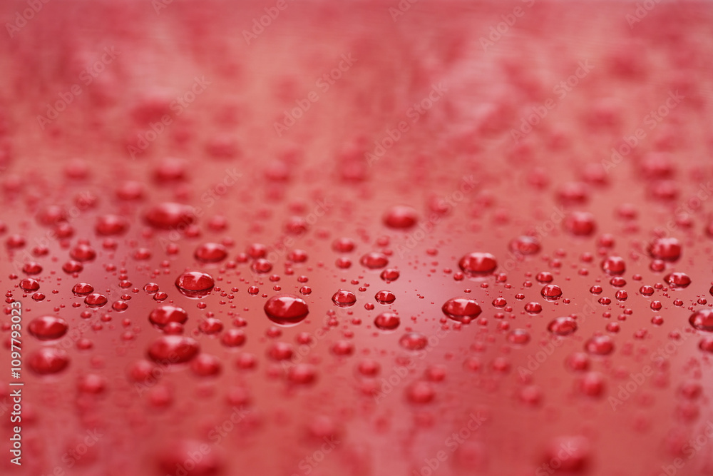 Fotografía Closeup rain drops on red car with hydrophobic coating