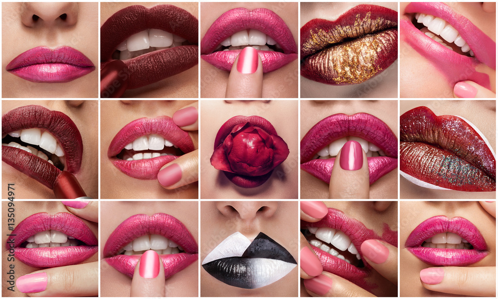 Fotografía Collage of lips in close up photos