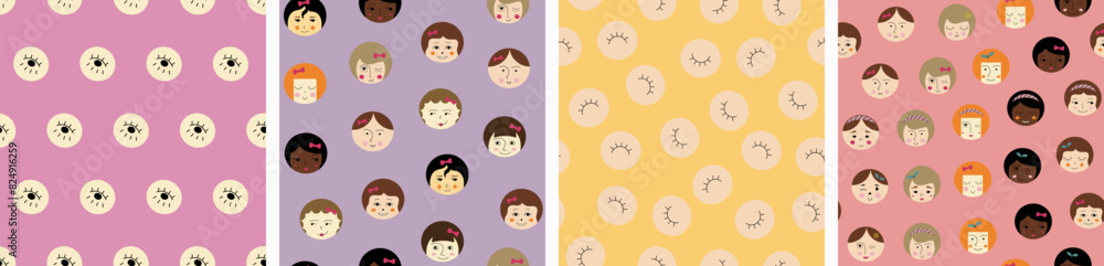 Fotografía Collection of four creative patterns, cutely girlish faces