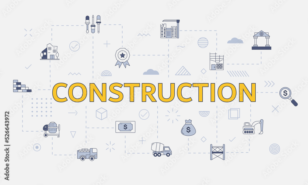 Fotografía construction concept with icon set with big word or text on center