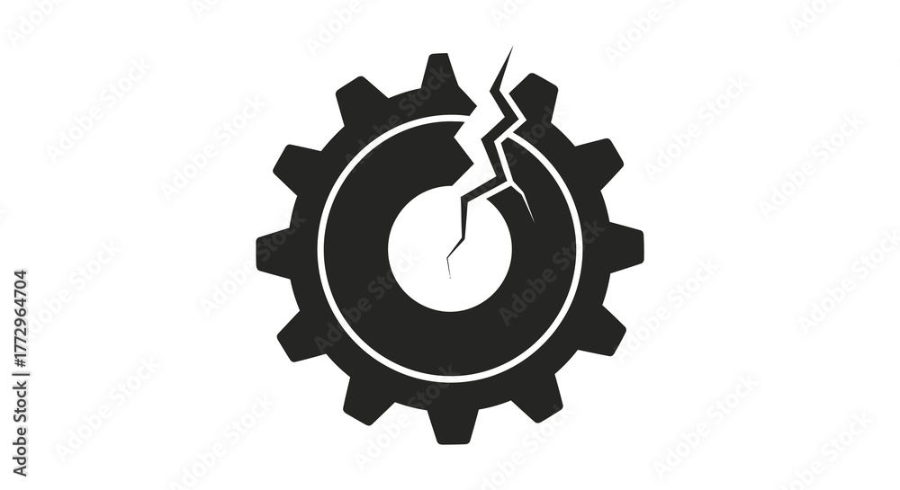 Cuadro en lienzo A stark black silhouette of a broken gear with a large crack running through its