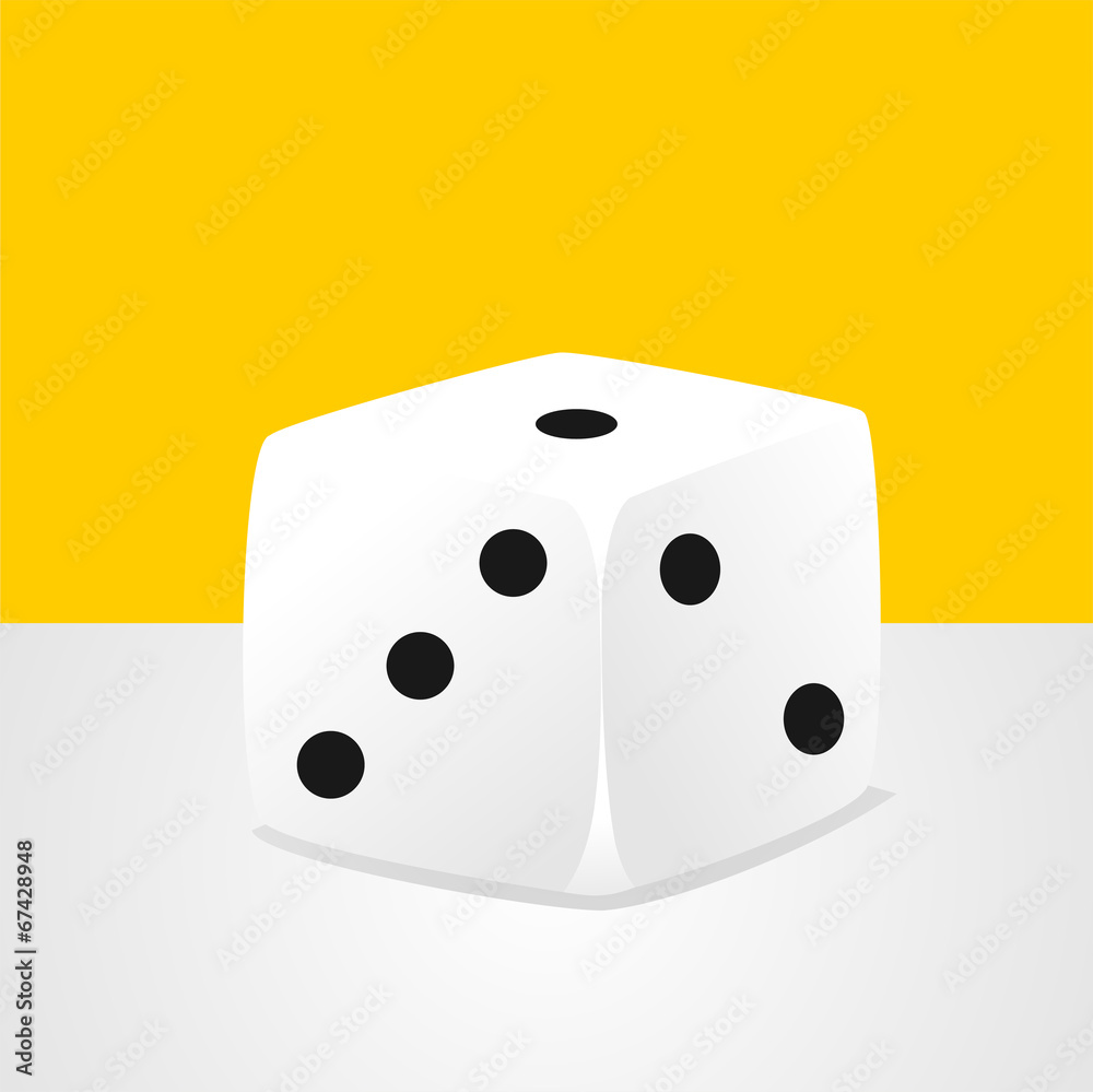 Fotografía Dado sobre fondo amarillo y gris. Ilustración vectorial