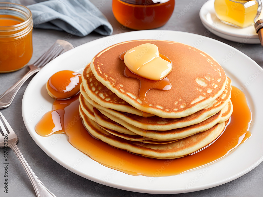 Fotografía Deliciosos panqueques con miel y mantequilla