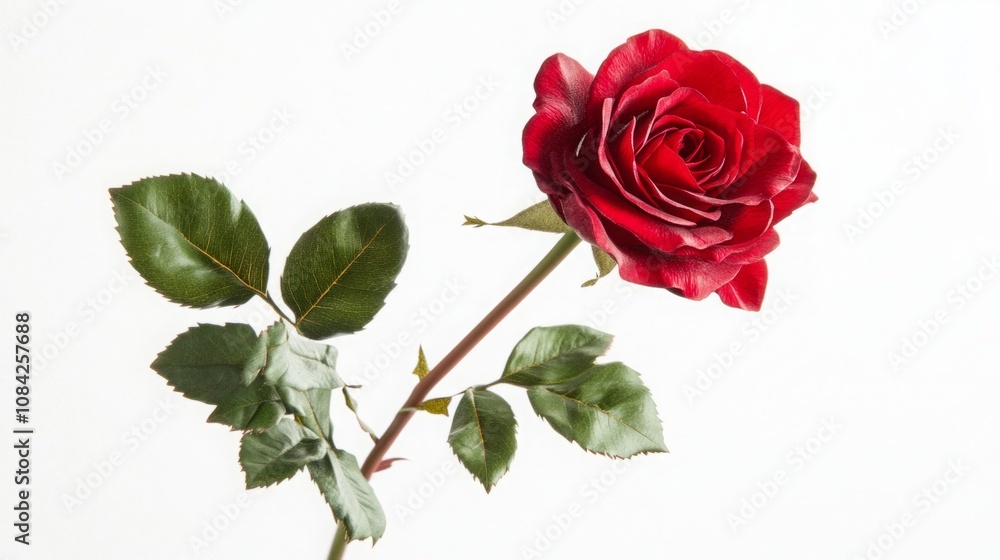 Fotografía Detailed image of a red rose in full bloom, featuring a short stem and several g