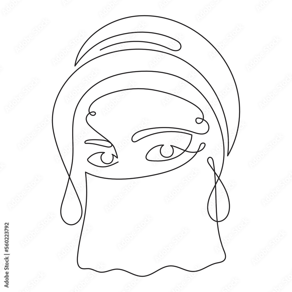 Fotografía Eastern woman in turban and veil, one line art, hand drawn oriental arab girl dressed in chador continuous contour