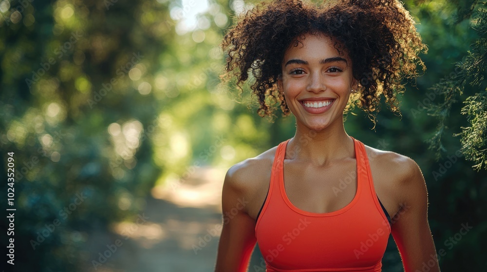 Fotografía Energized Female Runner in Red Tank Top After Completing a Jog