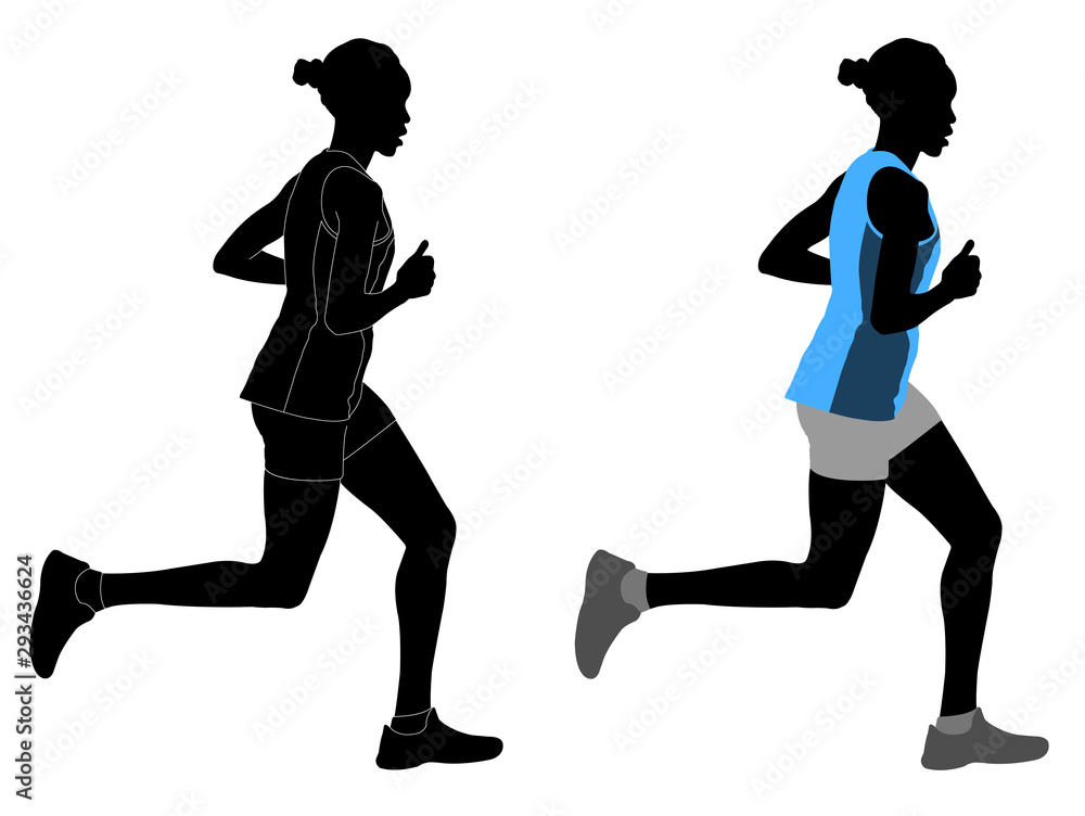 Fotografía female runner in color sportswear and silhouette with detailed outlines