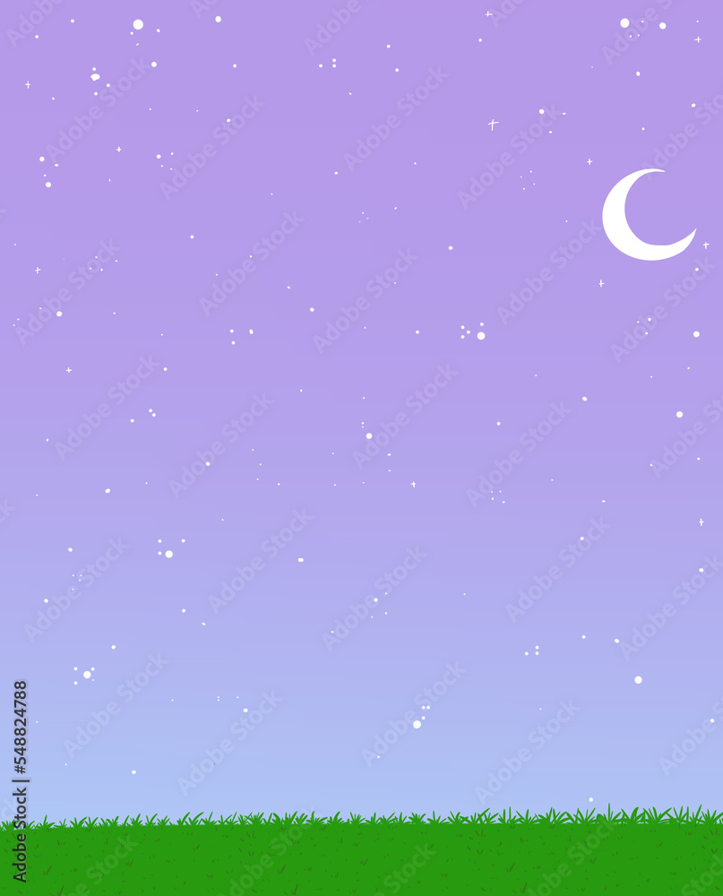Fotografía Fondo con cielo estrellado, luna y pasto