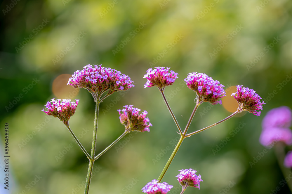 Fotografía Selective focus of purple Purpletop vervain flowers in the garden, Verbena bonariensis or Argentinian vervain is a member of the verbena family cultivated as flowering plant, Nature floral background