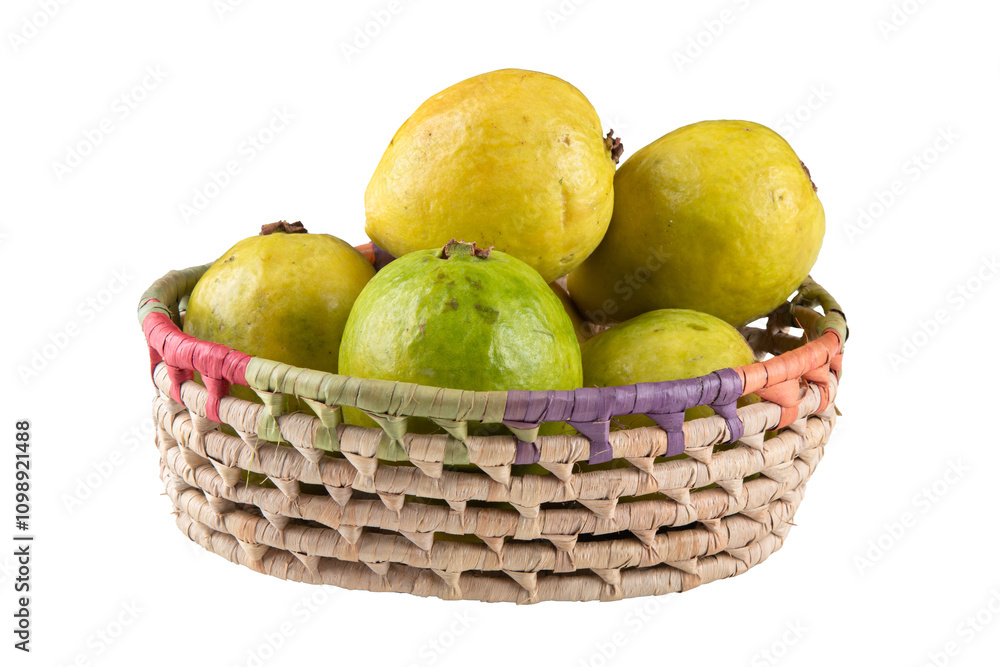 Fotografía Fresh guava fruit in a basket on transparent background