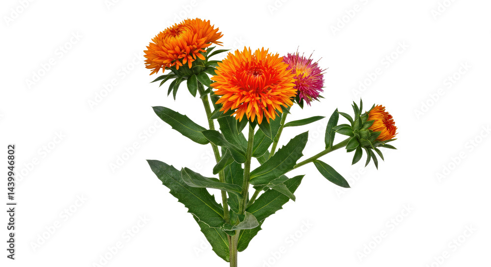 Fotografía Fresh Safflower Plant Leaves Blooms Isolated White Background Crisp Realistic Cl