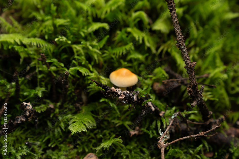 Fotografía Fungi kingdom, macro photography of mushroom and mycelium in a forest