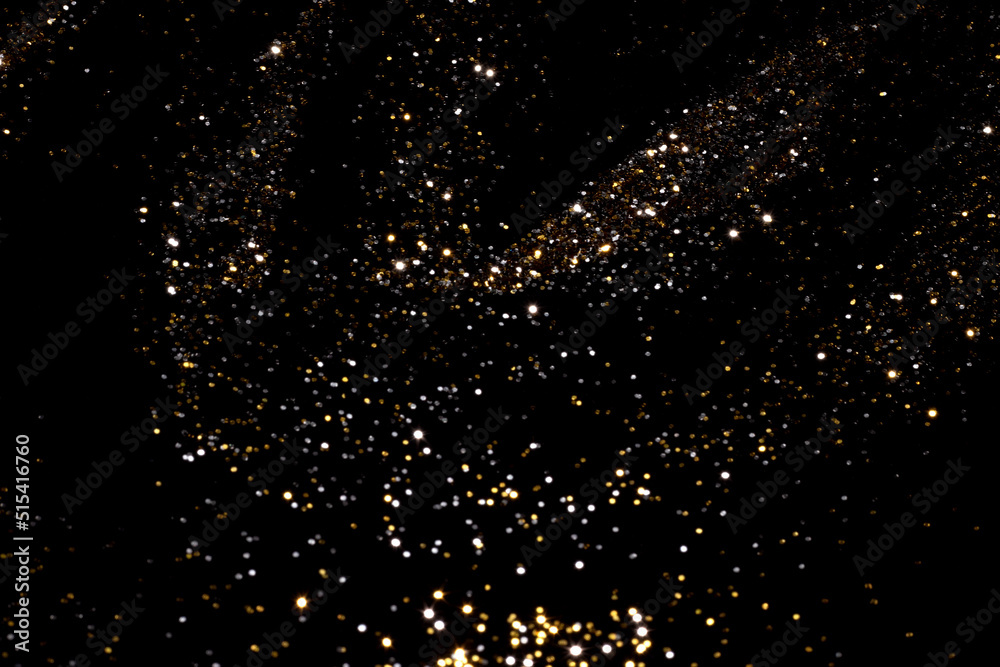 Fotografía Golden and silver blurred bokeh lights on black background
