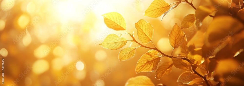 Fotografía Golden sunlight illuminates the delicate leaves of a branch in a tranquil natura