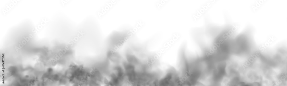 Fotografía Grey smoke puff, white background and studio with no people with fog in the air