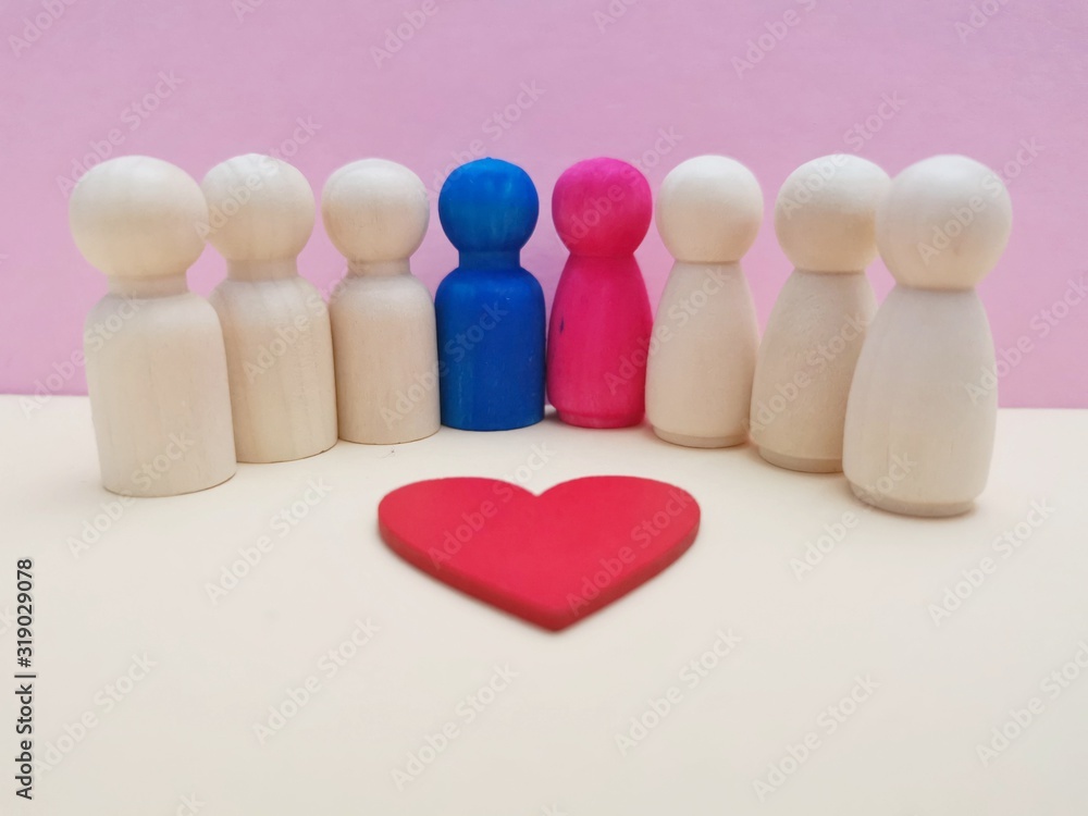 Fotografía Happy family with wooden dolls. Wooden doodles. Wooden people
