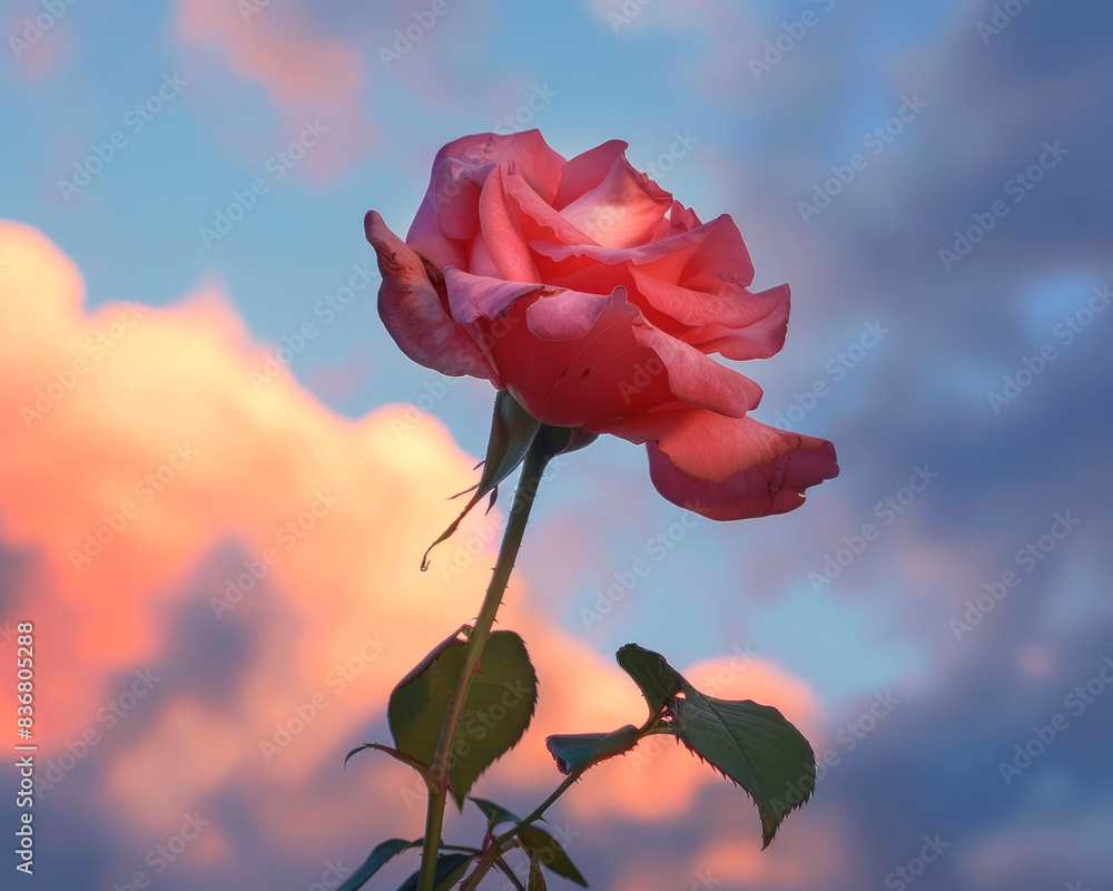 Fotografía Hermosa rosa con el cielo de fondo al atardecer.