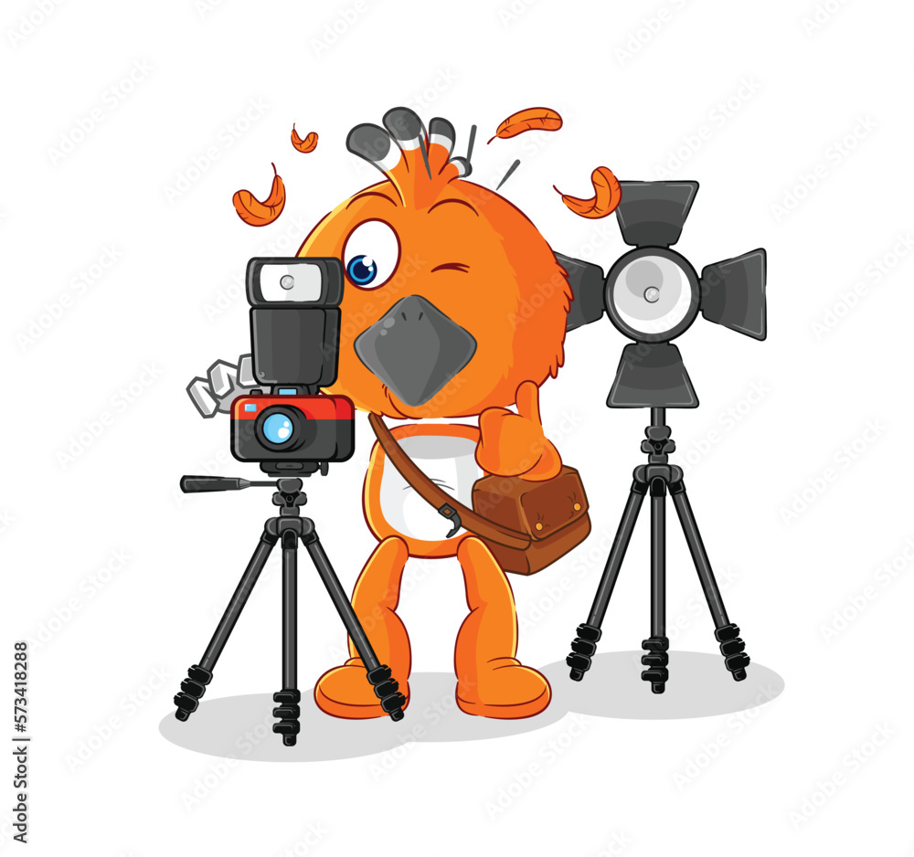 Fotografía hudhud bird photographer character. cartoon mascot vector