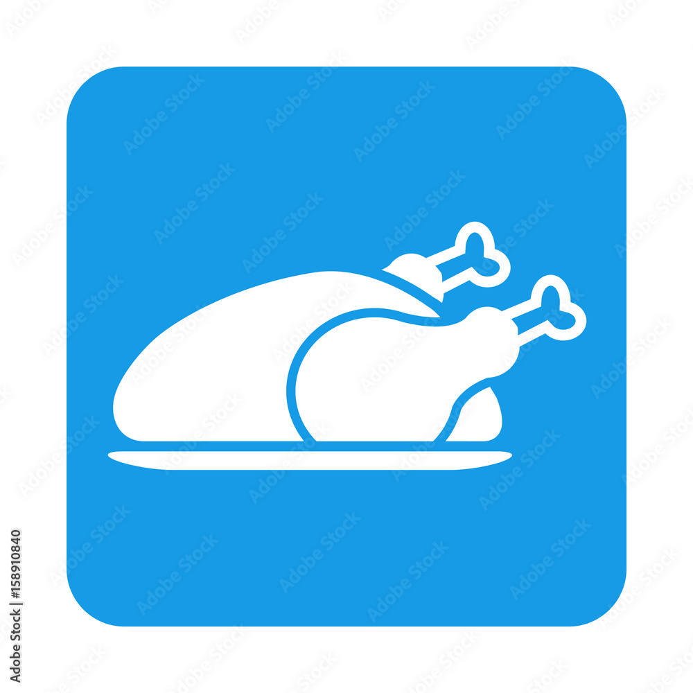 Fotografía Icono plano pollo asado en cuadrado azul