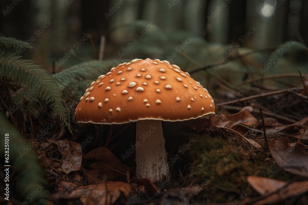 Fotografía Illustration of a detailed close-up of a vibrant mushroom in a mystical forest s
