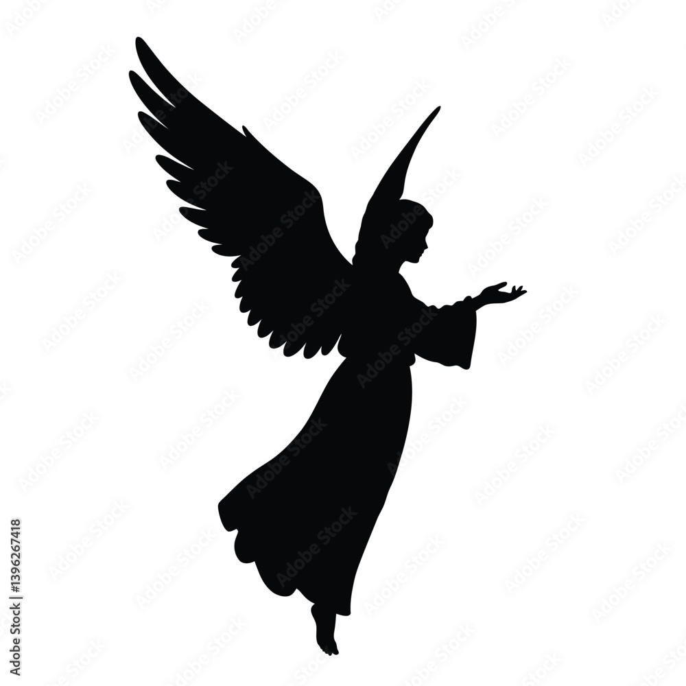 Fotografía Angel Silhouette Vector Illustration With Wings On White Background