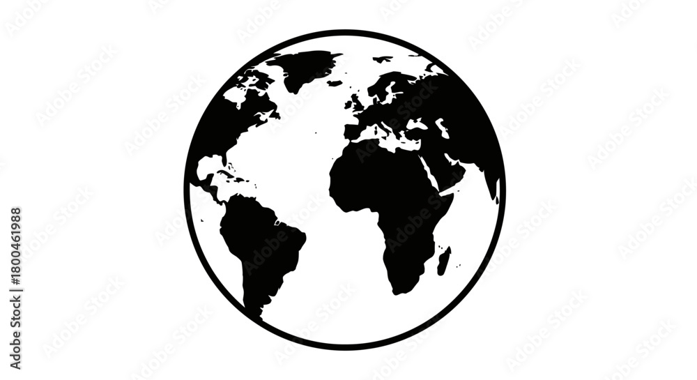 Fotografía A simple black and white illustration of planet Earth as seen from space, depict