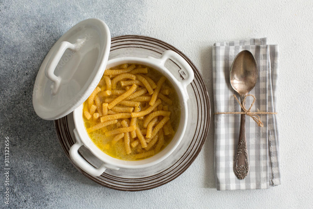 Fotografía Passatelli in brodo - passatelli in broth - pasta cooked in chicken broth