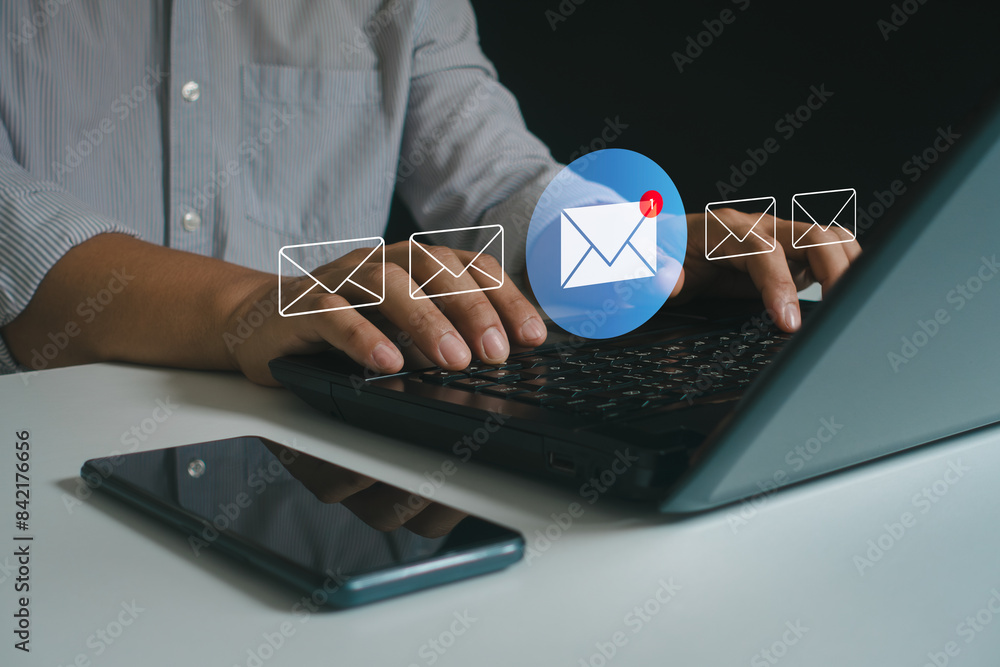 Fotografía New email with notification alert, Direct selling project in customer list business for e-mail communication and email digital marketing concept