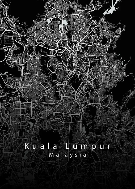 Cuadro en lienzo Kuala Lumpur Malaysia City Map black