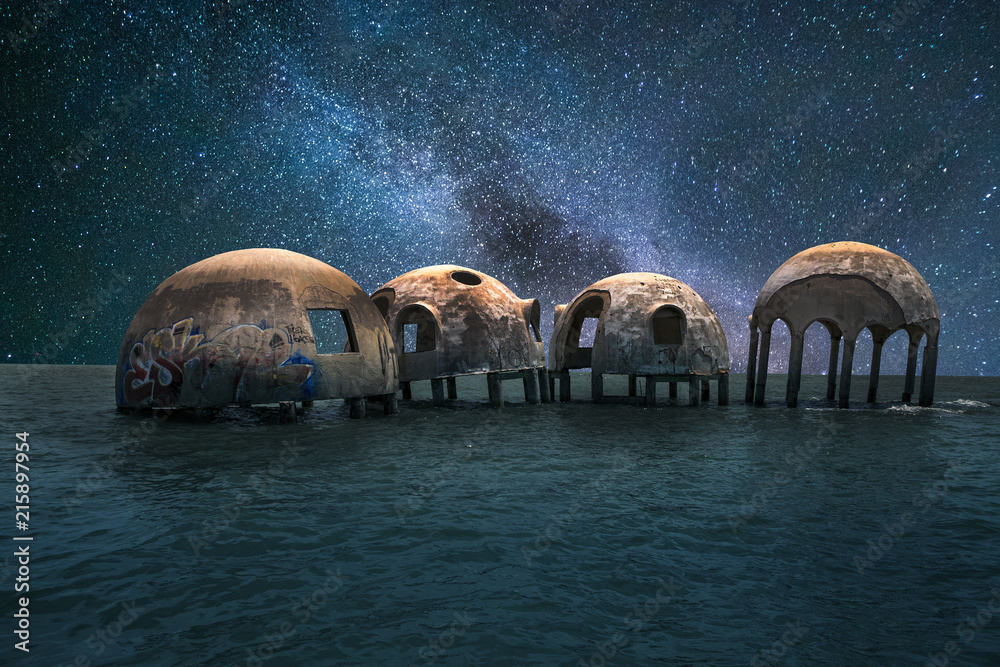 Fotografía Milky way stars across a night sky over the Cape Romano dome house