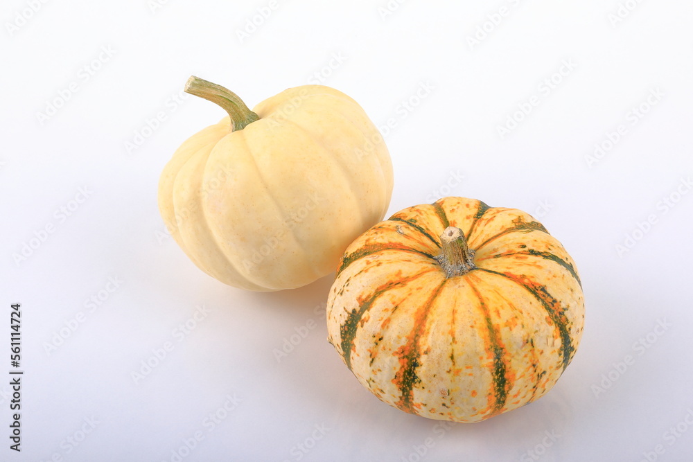 Fotografía Mini Pumpkin composition. A view on a white background.