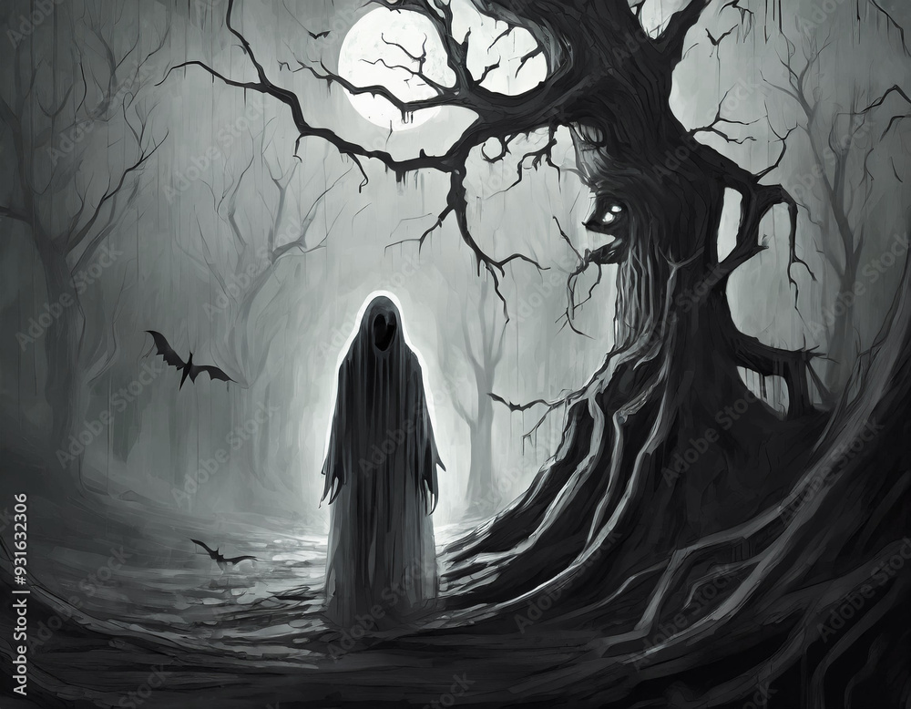 Fotografía Mroczny straszny las nocą upiór