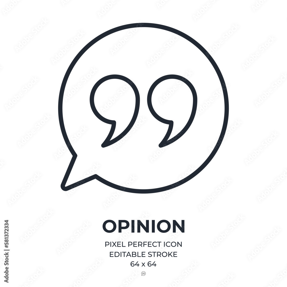 Fotografía Opinion and quotation mark editable stroke outline icon isolated on white background flat vector illustration