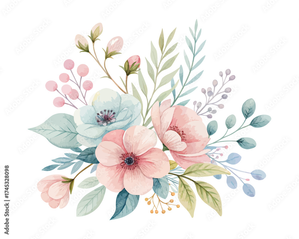 Fotografía Pastel Watercolor Flower Arrangement Clipart isolated on white background