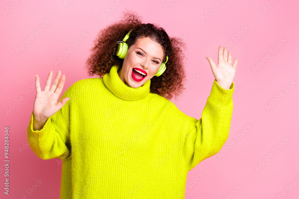 Fotografía Photo portrait of lovely young lady dance headphones dressed stylish yellow garm