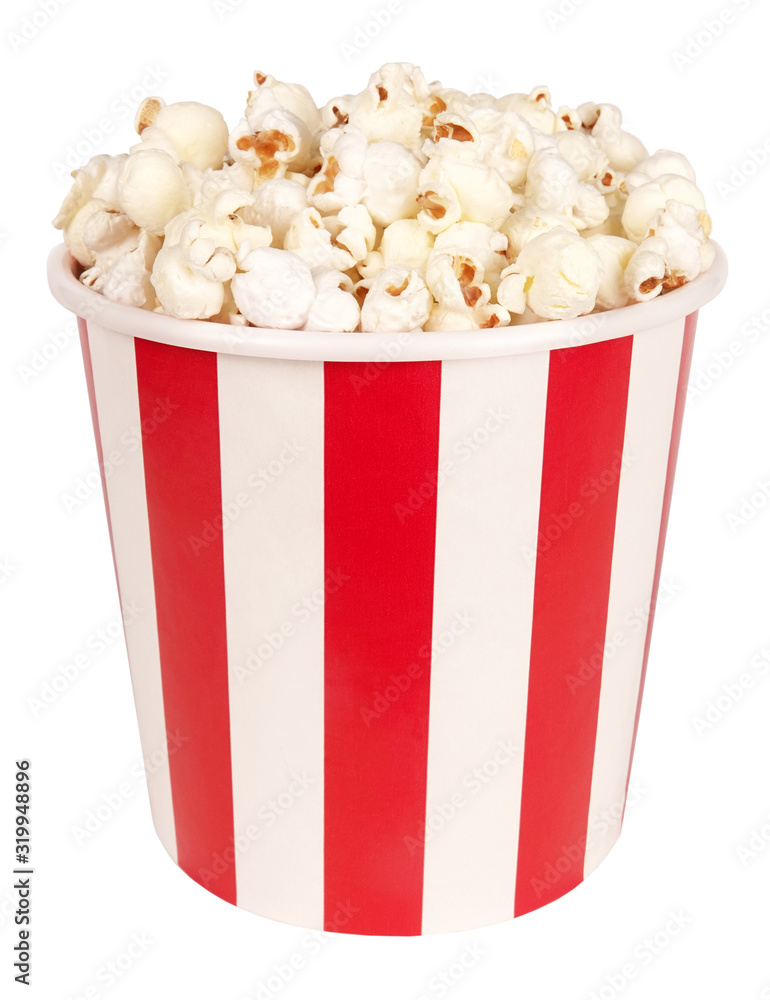 Fotografía Popcorn in red and white cardboard box bucket for cinema or TV