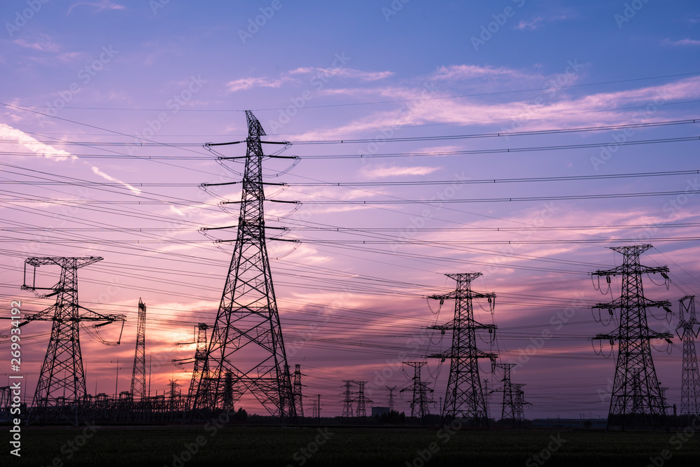 Fotografía Silhouette of Power Supply Facilities at Sunset