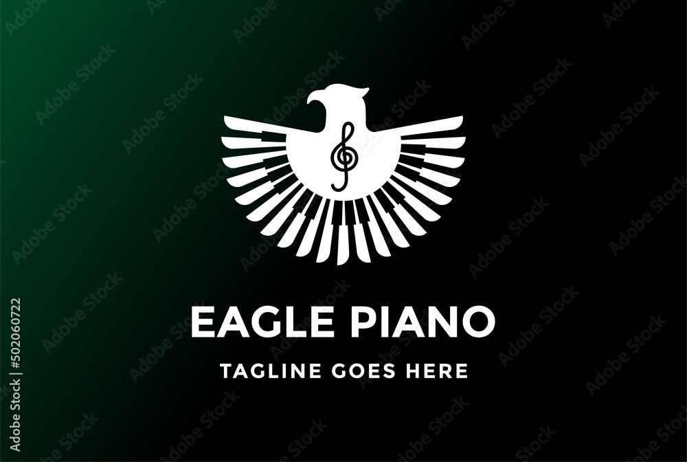 Fotografía Spread Wings Eagle Hawk with Piano for Music Instrument Logo Design Vector
