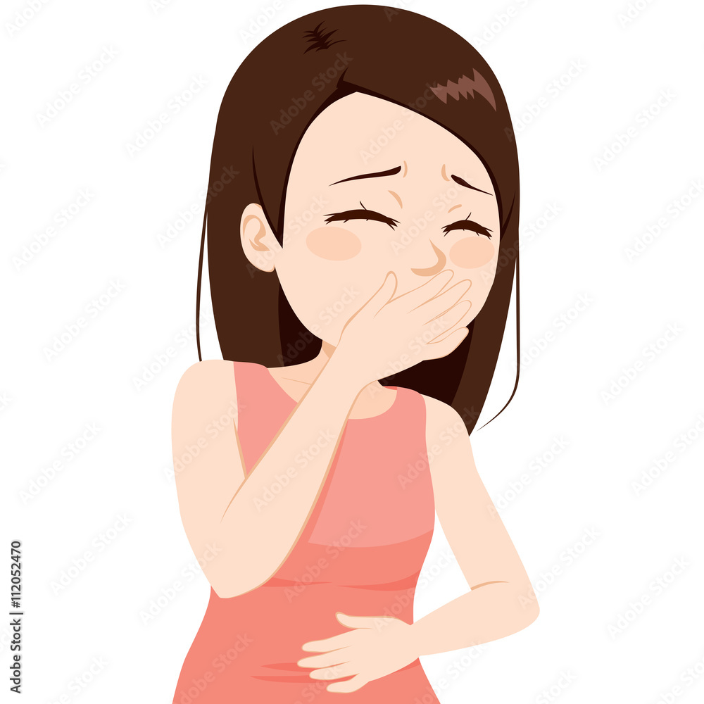 Fotografía Teenager girl covering mouth with hand sick about to throw up