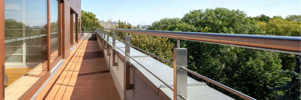 Fotografía Terrace with wooden floor, panorama